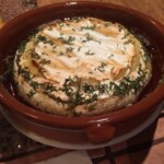 - Cut a slit around the top of the cheese. Place in a very slightly larger, oven proof dish.