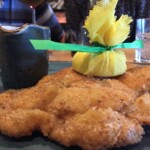 - Top with ½ lemon each. For a pretty presentation, wrap your lemon halves in a square of cheesecloth and tie with a ribbon. The cloth will keep the lemon seeds in when squeezing the juice on your Schnitzel.